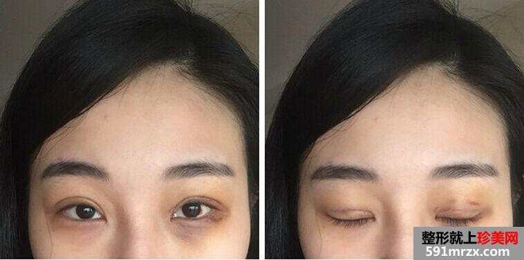 右边眼睛还是肿肿的,左边恢复得比较好!还没开始搽去疤膏,感觉缝线地方还没有完全恢复,摸上去会有些痛痛的。再等等吧!