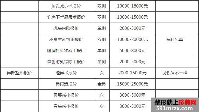 西安高一生整形医院真实价格价目表一览(以下价格仅供参考)