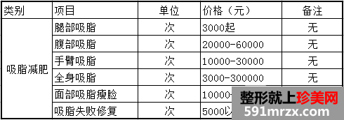 西京整形医院全新价格表—吸脂减肥