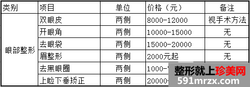 西京整形医院全新价格表—眼部整形