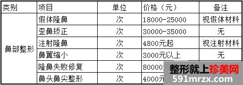 西京整形医院全新价格表—鼻部整形