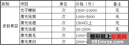 西京整形医院全新价格表—皮肤美容