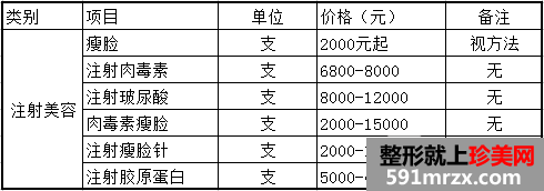 西京整形医院全新价格表—注射美容